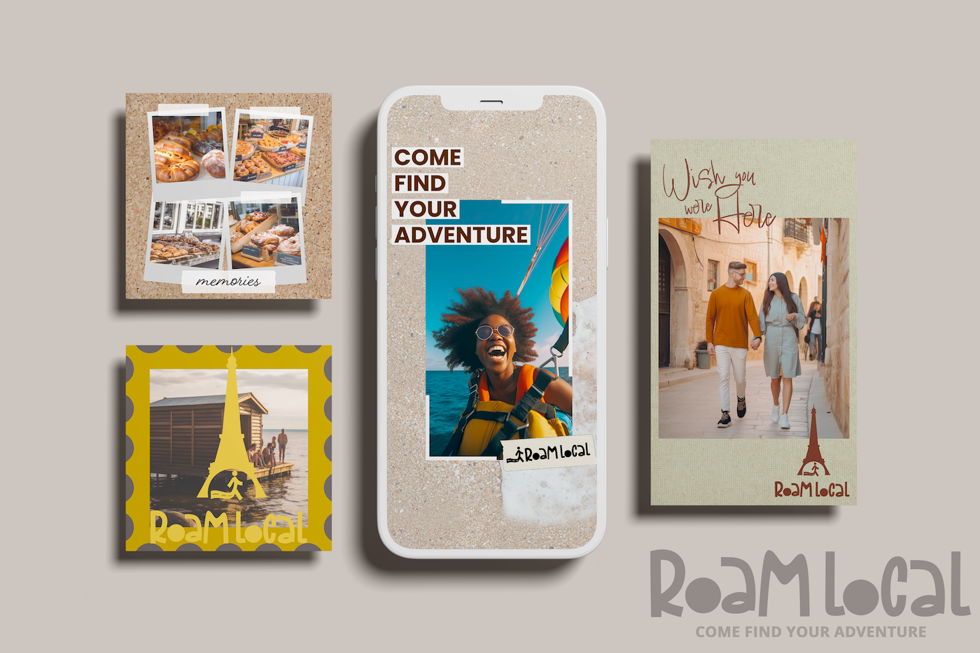 Mock Brand Identity for Roam Local, a European Holiday Tour Guide Company.