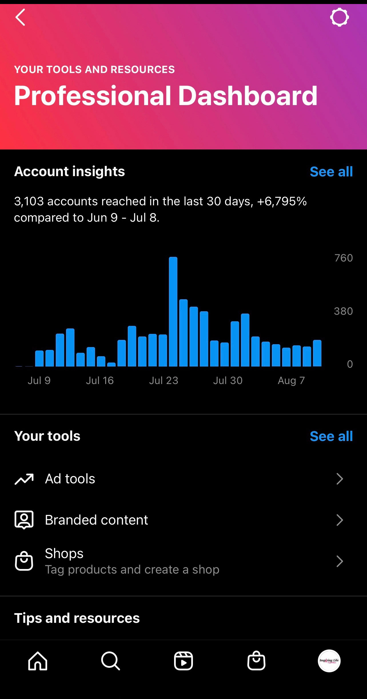 Began designing their content 7/11/22. As of 8/10/22, their Instagram reach increased by 6795%.